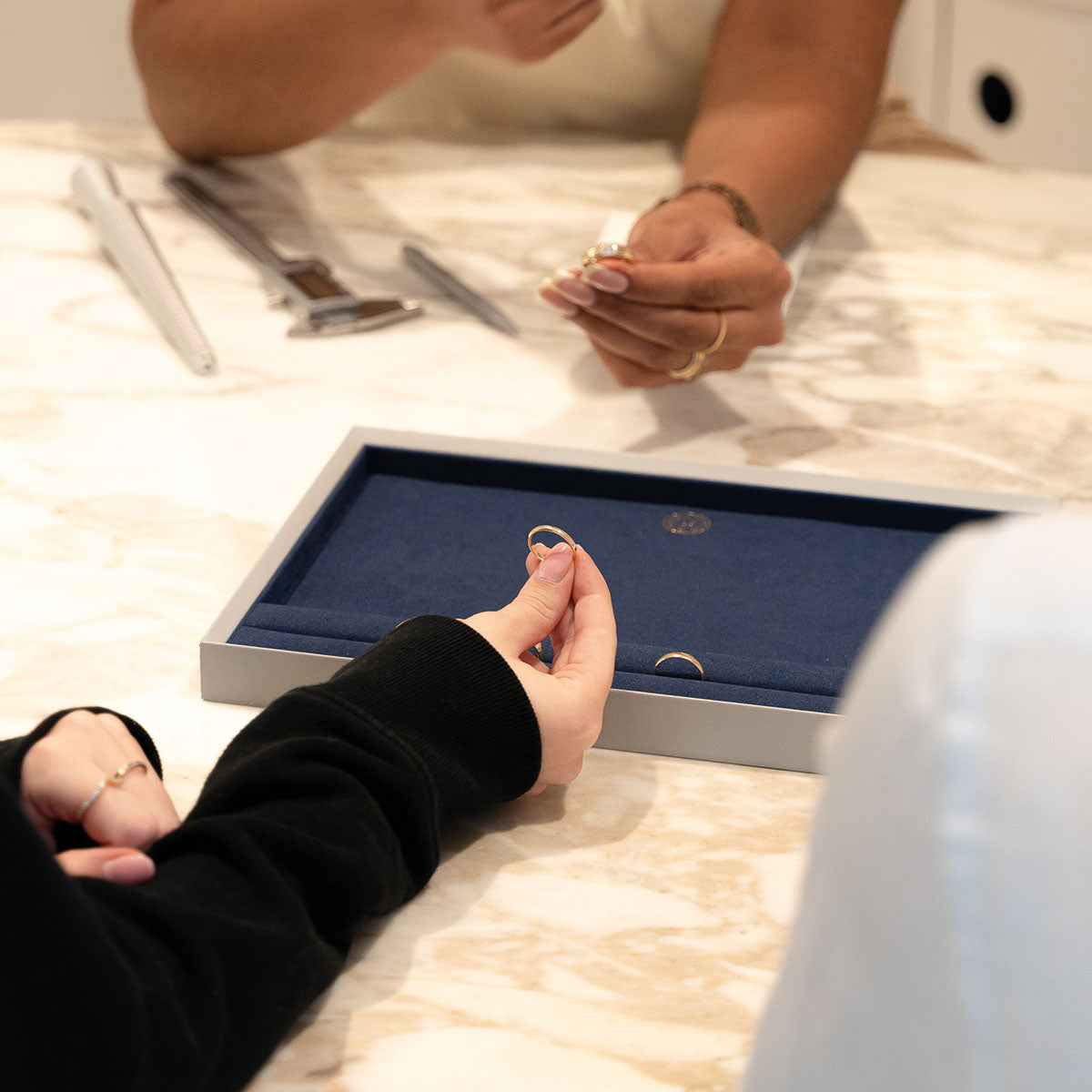 Unter Berücksichtigung der oben genannten Faktoren empfehlen wir dir, bei der Bestellung Ihrer handgefertigten Verlobungs- und Trauringe 6-8 Wochen einzuplanen. In unserem Blogbeitrag "Finden Sie den perfekten Verlobungsring!" erfährst du mehr darüber, wie du den perfekten Ring für deinen Partner auswählst.