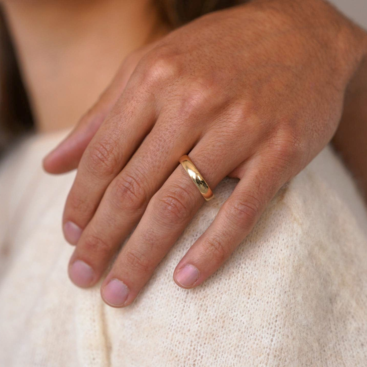 Eleganter Ehering in gelbgoldModel trägt den Ehering in Kombination