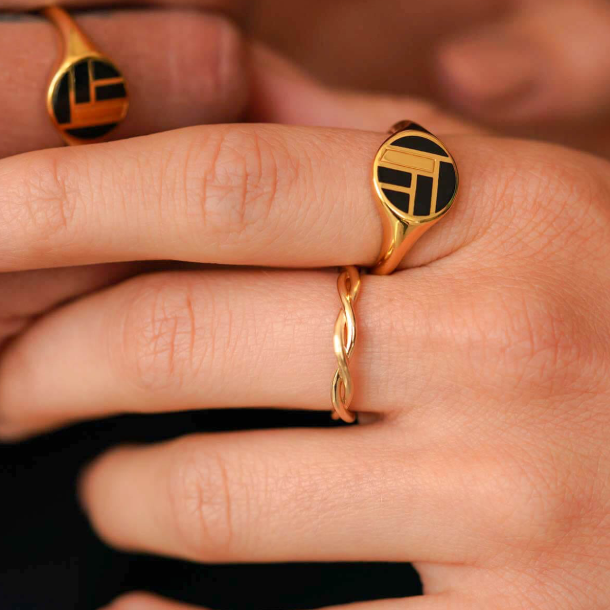 Verspieltes Design bei einem Gelbgoldenen RingModel trägt das verspielte Design in Kombination