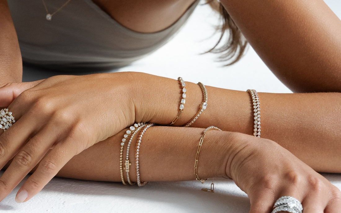 Layering bracelets is one of the most popular techniques for creating an individual and modern bracelet look. Start with the largest or most eye-catching piece as a base - such as a wide bangle or a striking watch. From there, work your way up to the finer elements.