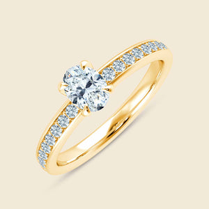 The characteristic feature of the pavé is the dense arrangement of the stones, in which the light is captured and reflected in perfect harmony. The individual diamonds are placed in such a way that they create a continuous sparkle, as if the entire surface were paved with gemstones. This popular technique is used in both classic and modern designs and adds a touch of glamor to any piece of jewelry. In solitaire engagement rings, the pavé setting is often used for the ring band to further emphasize the central stone.