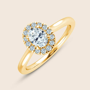 This setting is particularly suitable for engagement rings and is often combined with a solitaire to give it more presence. The central stone can be held in four or six prongs, while the surrounding small diamonds are pave-set or arranged in a modified pavé setting. The design can be varied from a simple, round halo to more complex shapes with multiple layers or an oval-shaped ring for teardrop-shaped main stones.