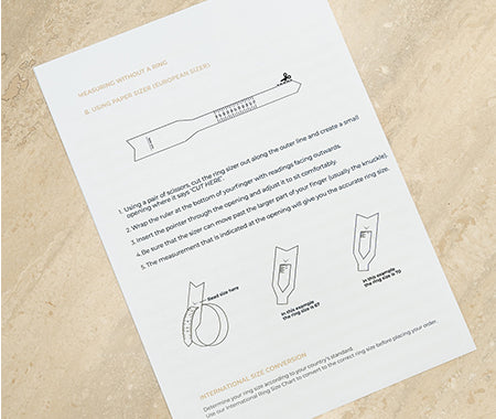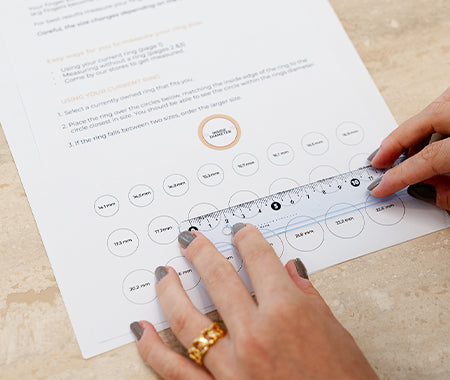 Another way to determine the right ring size is to print out our ring sizer. And this is how it works: