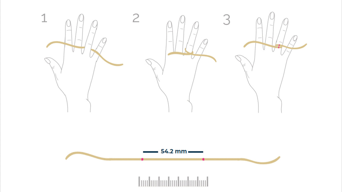 - Pay attention to the knuckle: If your knuckle is very different from the base of your finger, it is often advisable to order one size larger.