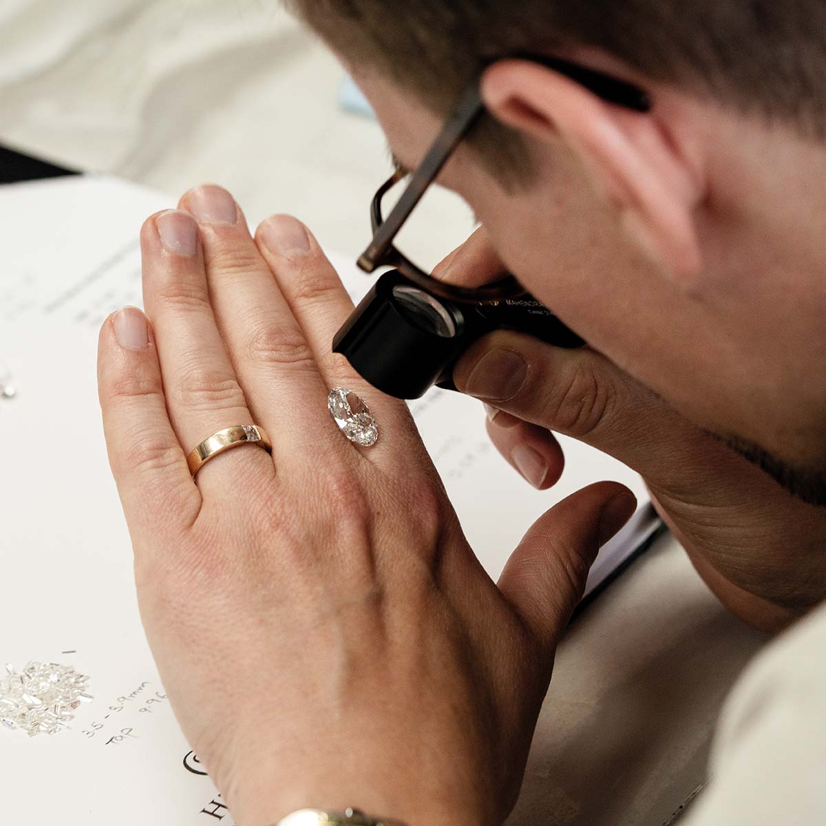 Our Pret Line is handcrafted from certified and partially recycled 925 sterling silver. The pink and yellow colors are gold-plated with 18-karat gold to achieve a minimum thickness of 3 microns. This ensures excellent durability, extends the life of the jewelry and gives it a luxurious feel. Our Fine Line, Lab Line and Bridal Line are handcrafted from 14-karat gold. The Lab Line and Bridal Line are also available in 18 carat gold and 950 platinum. All our Fine & Bridal Line diamonds have a clarity of SI2 and a color grading from G to H. The Lab Line offers lab-grown diamonds in VS | G. The diamonds and colored stones we use are sustainably sourced in accordance with global best practices. Our diamonds and lab-grown diamonds are cut in-house by our team of artisans. We manage and control the entire value chain from mine to market and from lab to life. We source our diamonds, polish, cut and manufacture them all in-house. Taking control of the entire manufacturing process, from design to sourcing and production to packaging, gives us a price advantage and gives you a guarantee of high quality and fair, ethical and equitable processes. That's why you get a one-year guarantee on the stones and coating when you buy.