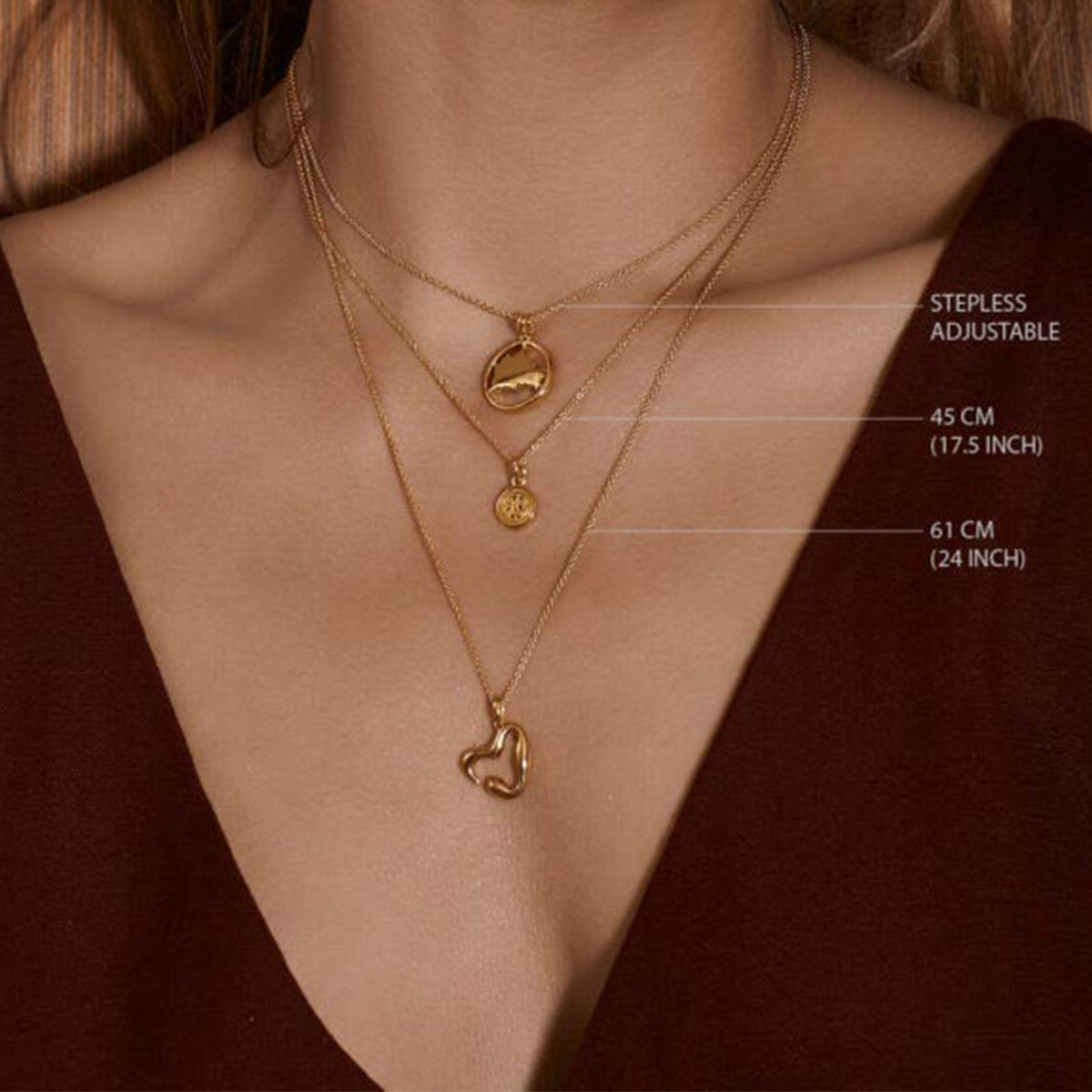 We offer two different chain lengths for our Pret line (silver jewelry). Our regular chain, which comes with all the pendants in the Pret line, is 45cm (17.5 inches) long. Alternatively, our long chain is 61cm (24 inches) long. Both are infinitely adjustable to shorten them to the desired length.