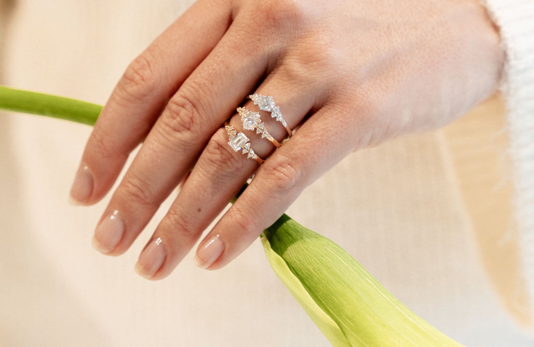 Unsere Ehe- und Verlobungsringe werden in Handarbeit aus 14k, 18k Gold oder 950er Platin hergestellt. Unser Gold ist dabei zu 100% recycelt und unser Platin anteilig recycelt. Unser Weißgold wird rhodiniert und unser Roségold nano-beschichtet, um den natürlichen Oxidationsprozess zu verlangsamen. Zusätzlich sind unsere Ringe nickelfrei, was sie für Allergiker geeignet macht. Anschließend werden sie mit natürlichen Diamanten der Qualität SI | GH aus zertifizierten Minen besetzt. Alternativ kannst du die CO2-neutrale Alternative Lab-Diamant in der Qualität VS | F+ wählen, welche ihren Vorgängern in nichts nachsteht und sogar günstiger ist.