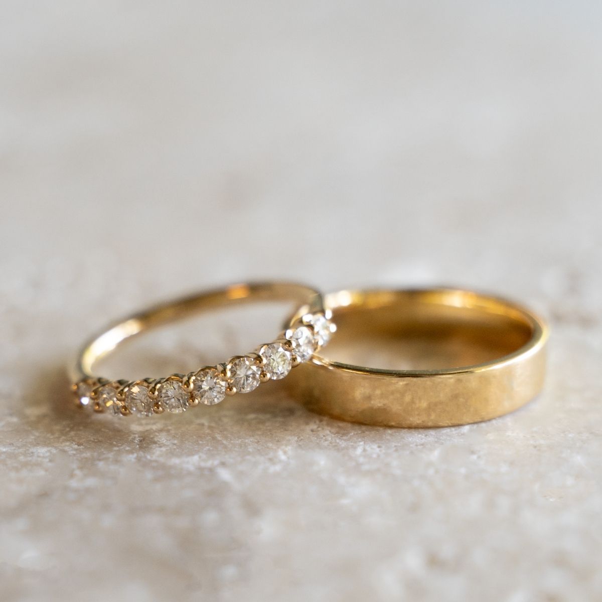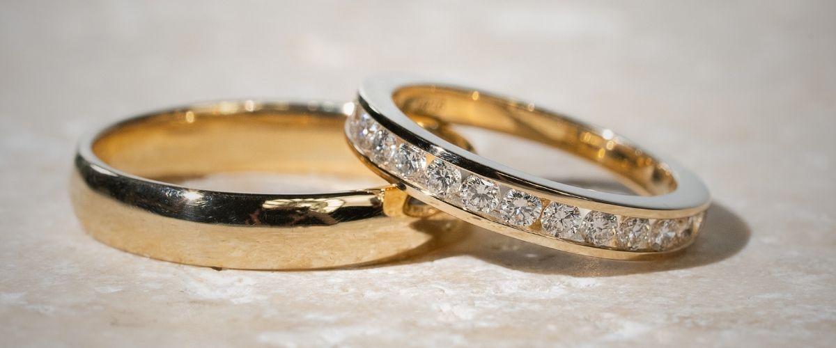 Eheringe können schlicht oder mit funkelnden Steinen gestaltet sein – und beides hat seinen Reiz. Ringe ohne Stein wirken puristisch, elegant und besonders alltagstauglich. Modelle mit Diamanten oder Edelsteinen setzen visuelle Akzente und können symbolisch für eure gemeinsame Zukunft stehen. Ob einzelne Steine, kleine Pavé-Akzente oder ein vollständiger Eternity-Ring – überlegt, wie viel Glanz ihr im Alltag mögt und ob der Ehering später neben dem Verlobungsring stehen soll.