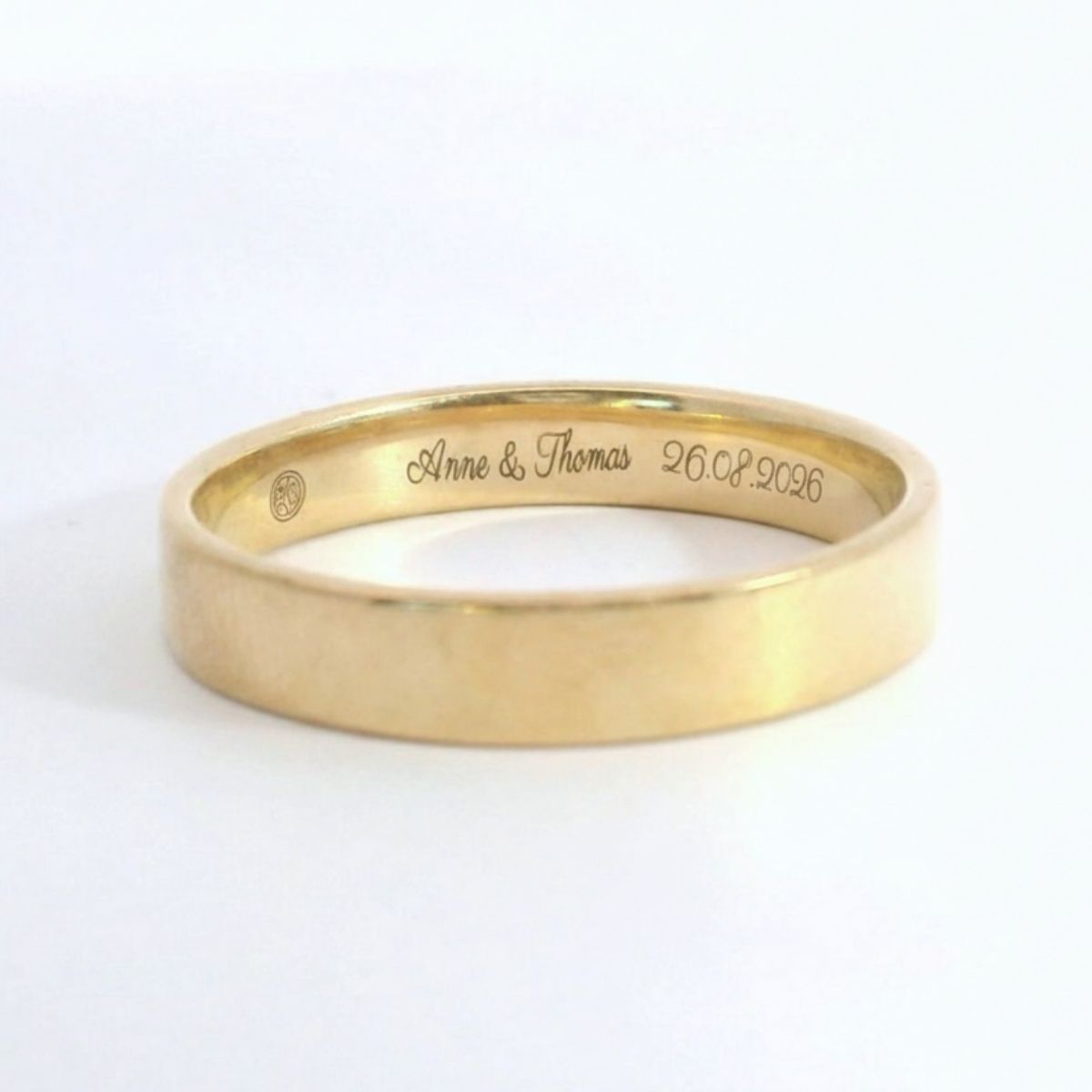 Eine Gravur verwandelt einen Ring in ein emotionales Schmuckstück. Ob es das Hochzeitsdatum, eure Initialen, ein bedeutsames Wort oder sogar ein kleines Symbol ist, viele Paare wählen Botschaften, die ihre Geschichte widerspiegeln. Gravuren werden innen am Ring hinzugefügt und verleihen jedem Schmuckstück eine ganz persönliche Bedeutung. Plant für individuelle Gravuren ausreichend Zeit ein, da manche Schriften oder Zeichen mehr Aufwand benötigen als andere.