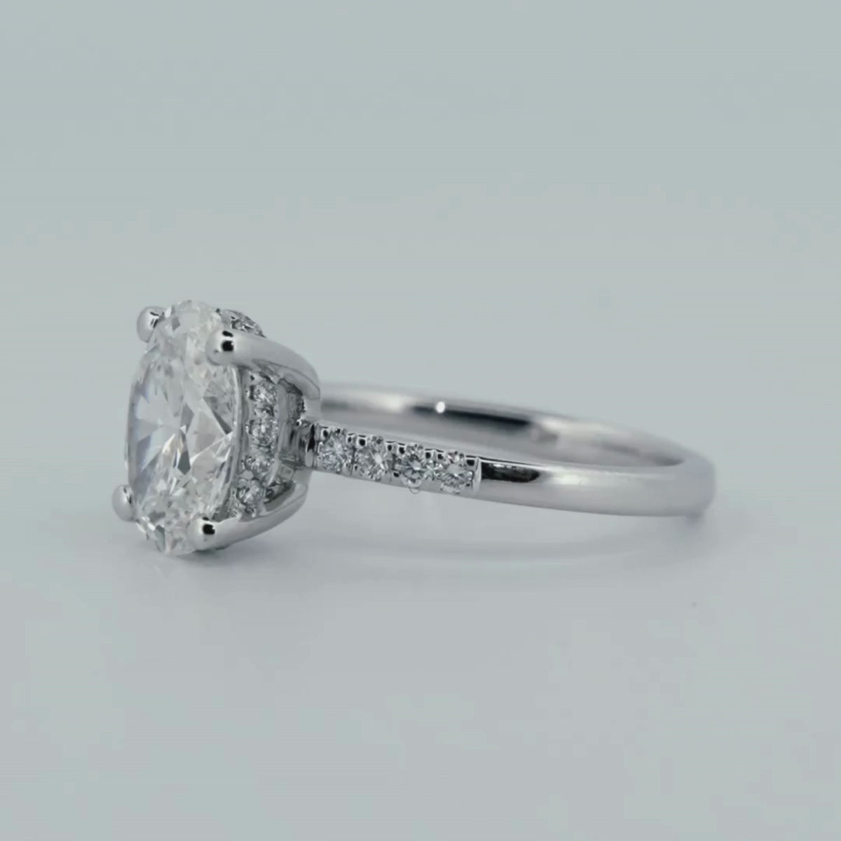 Dieser elegante Weißgoldring in 10k Gold hat einen eindrucksvollen ovalen Lab Diamanten mit 2 Karat als zentralen Stein. Der Hauptstein wird durch ein glitzerndes Mikroband aus kleineren Diamanten visuell erweitert. Das feine Micro-Pavé-Band verstärkt das luxuriöse Design. Der einmalige Custom Ring hat Größe 54 und wirkt durch seine schlanke ovale Form Finger verlängernd. Besonders ist, wie sich der Ring nahtlos an den Finger anschmiegt, sodass er trotz seiner beeindruckenden Strahlkraft dezent und angenehm zu tragen ist – ein Stück, das sowohl Stilbewusstsein als auch Persönlichkeit ausdrückt. Er eignet sich hervorragend als Verlobungsring oder als besonderes Schmuckstück. Wir fertigen diesen Ring gerne für dich personalisiert auf Anfrage in anderen Farben und Größen an!