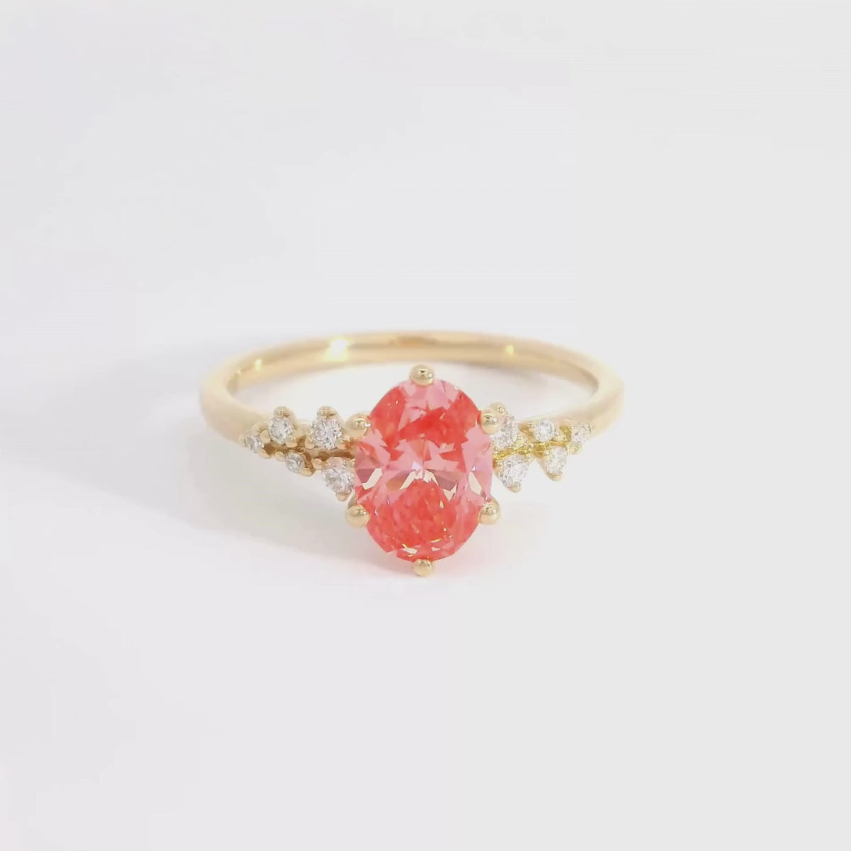 Den Stardust Oval Pink Custom Ring zieren filigrane Lab Diamanten, die den zentralen 1ct Lab Diamanten umrahmen. I...
